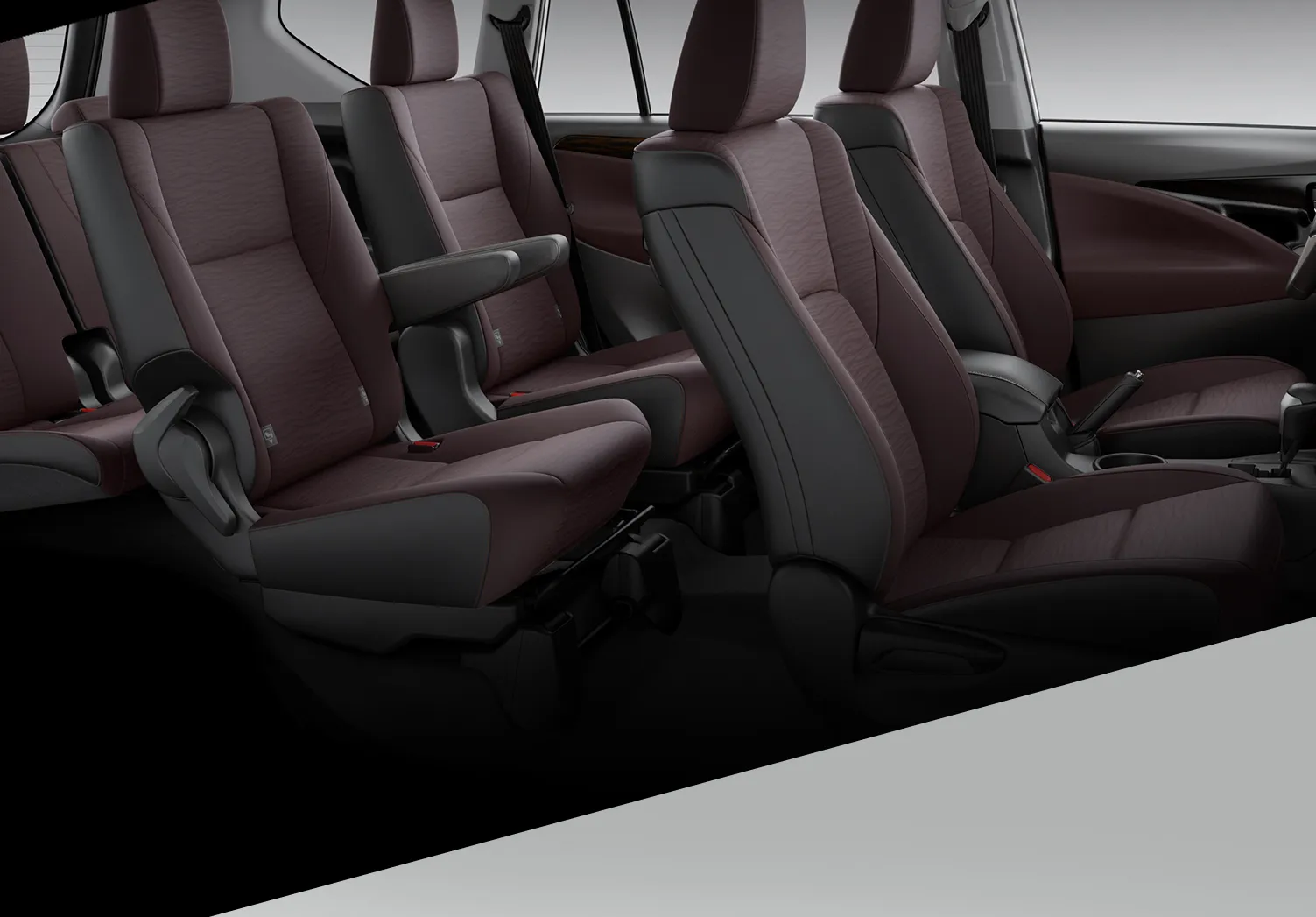 Inside, the Innova 2025 provides a comfortable and flexible cabin for up to seven or eight passengers. High-quality seating materials, adjustable seats, and ample legroom ensure comfort on long journeys. Foldable and configurable seating arrangements provide maximum cargo flexibility for business or family travel.